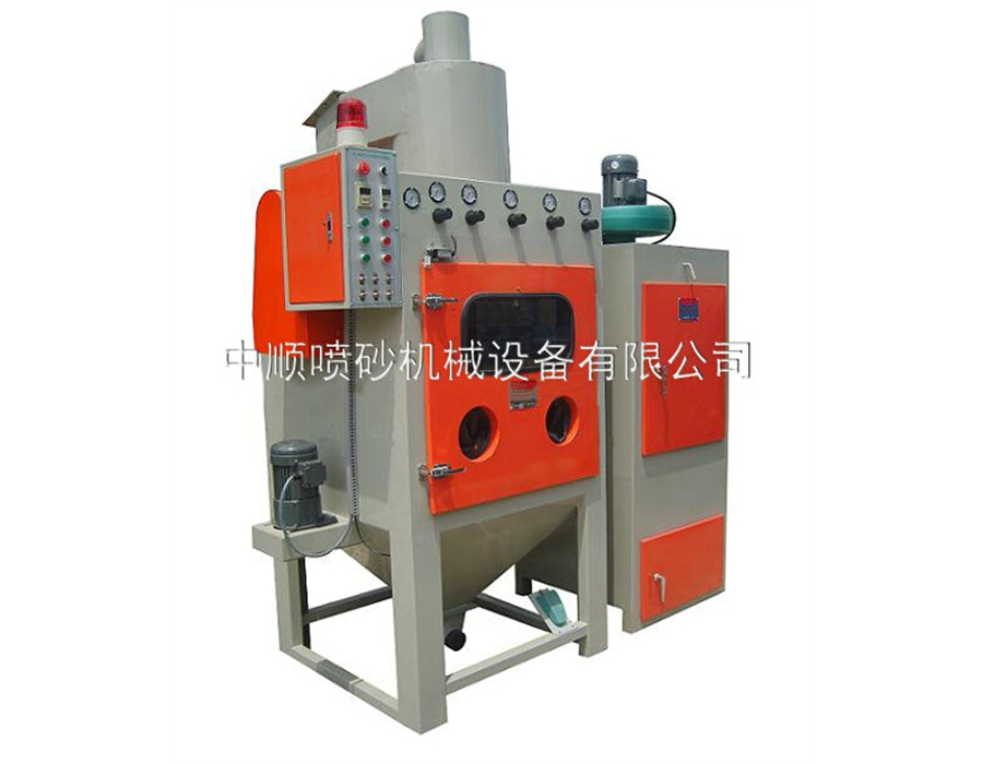 2、轉(zhuǎn)盤具有360。自動旋轉(zhuǎn),速度可用電動調(diào)速,加快加工速度,較易控制噴砂品質(zhì)。